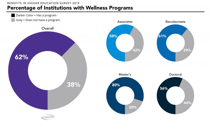 More than one-third of institutions who participated in the survey do not have a wellness program, but evidence suggests that institutions that prioritize employee well-being through wellness programs have experienced positive results.