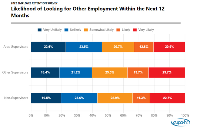 The newly published report, The CUPA-HR 2022 Higher Education Employee Retention Survey: Focus on Supervisors, explores supervisors’ likelihood of looking for new employment, their current challenges and working environments, and which job aspects specific to supervisors are associated with their retention. The report analyzes data from the 3,815 higher ed administrators, professionals and non-exempt staff, most (57 percent) of whom were supervisors, who responded to CUPA-HR’s 2022 Higher Education Employee Retention Survey.