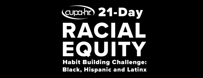 This challenge, first shared in January 2021, focuses on equity for Black, Hispanic and Latinx individuals extends and builds upon our work from the 21-Day Racial Equity Habit Building Challenge developed last summer. It is another opportunity for us to engage as HR leaders, faculty and staff from campuses across the country in learning and taking action to make our higher education communities more equitable and inclusive.