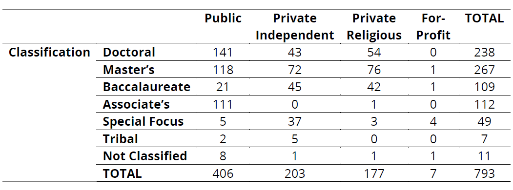 Respondents were largely human resources and provost office professionals from higher education institutions in the U.S. There were 793 institutions that completed the survey.[4]