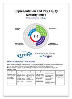 In higher education, attention to representation and pay equity efforts is often focused on the student population. CUPA-HR's Representation and Pay Equity Maturity Index is designed to help higher ed institutions take meaningful steps to develop their representation and pay equity efforts among staff and faculty. The Representation and Pay Equity Maturity Index is not a climate survey; it’s a tool for assessing systemic (institutional) progress along a continuum of practices that help create and sustain an inclusive campus community.