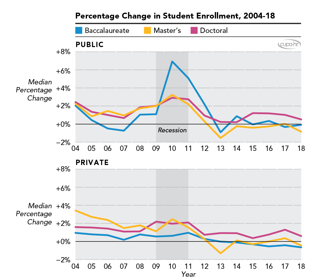 Citation for this report: Li, Jingyun; McChesney, Jasper; & Bichsel, Jacqueline (2019, February). Impact of the Economic Recession on Student Enrollment and Faculty Composition in U.S. Higher Education: 2003-2018 (Research Report). CUPA-HR.
