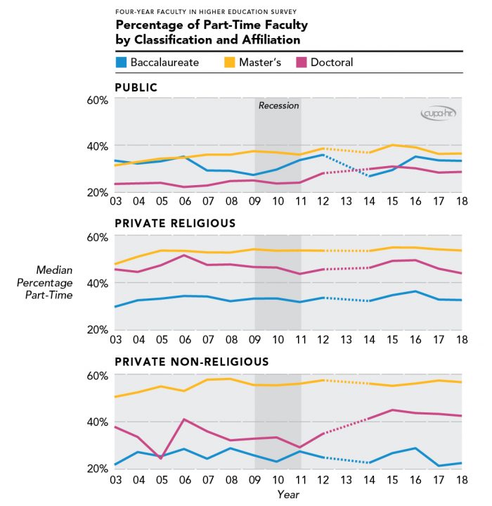 18 Only 35% of institutions offered healthcare benefits to part-time faculty in 2017. CUPA-HR. (2018). Benefits in Higher Education Survey.