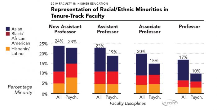 3 Across all 34 disciplines surveyed, n = 12,378 psychology faculty out of N = 258,378 total faculty. Source: CUPA-HR 2018-19 Faculty in Higher Education Survey.