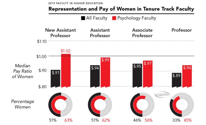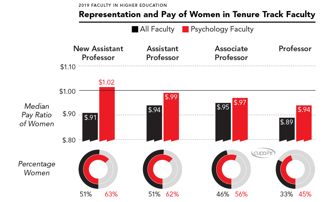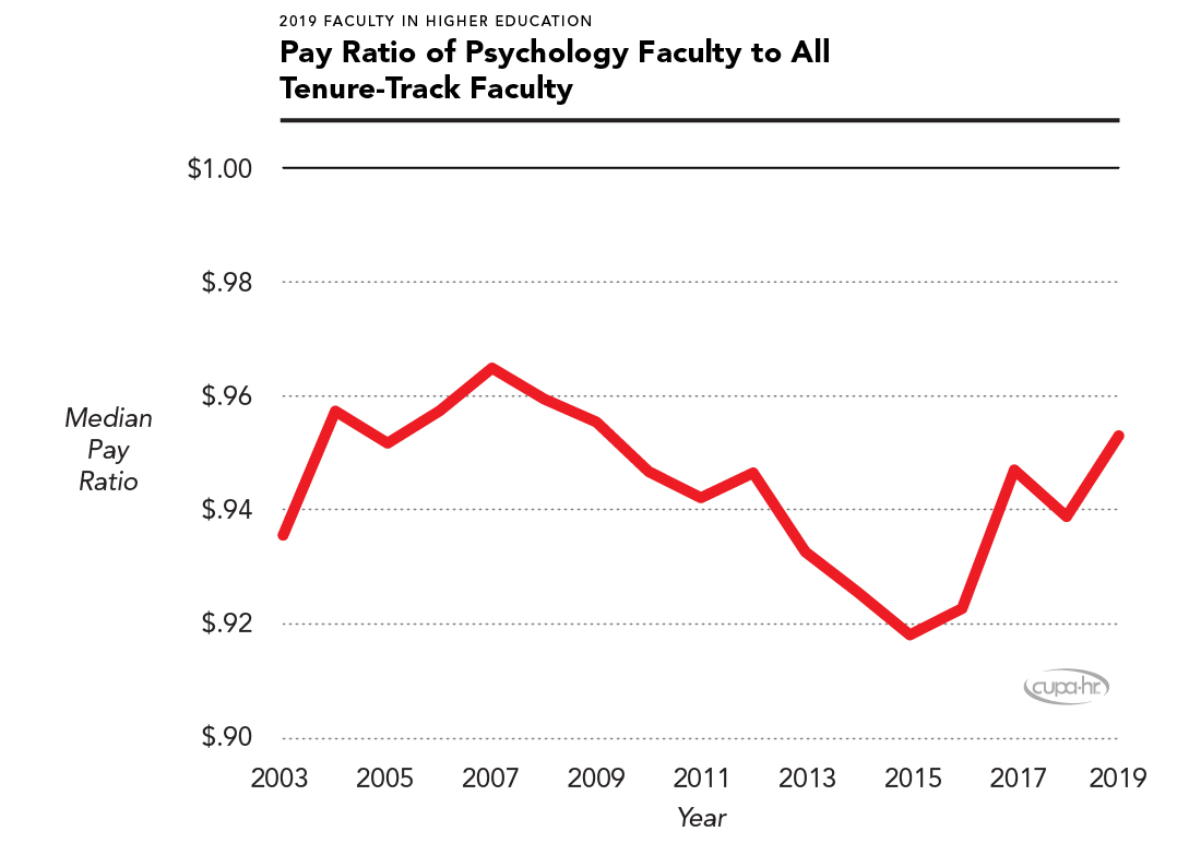 - Tenure-track psychology faculty are consistently paid less than faculty as a whole across all ranks, and this is established as a long-term trend.