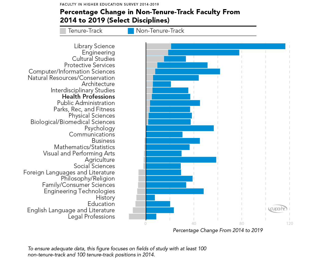 Figure 2. Percentage Change in Non-Tenure-Track Faculty From 2014 to 2019 (Select Disciplines)